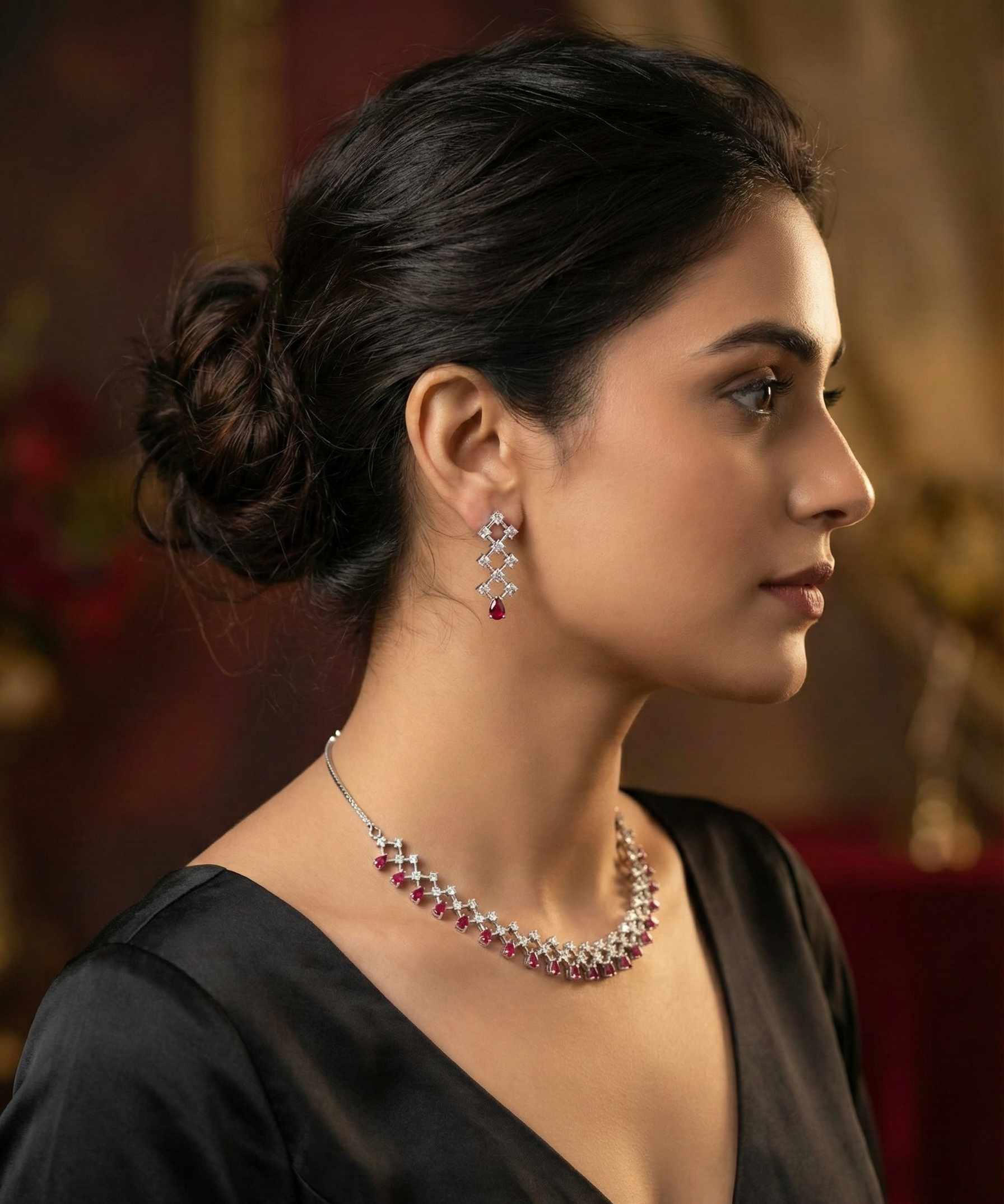 Red Necklace Earrings Combo